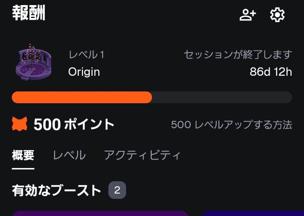 - レベルアップで報酬と特典を解放